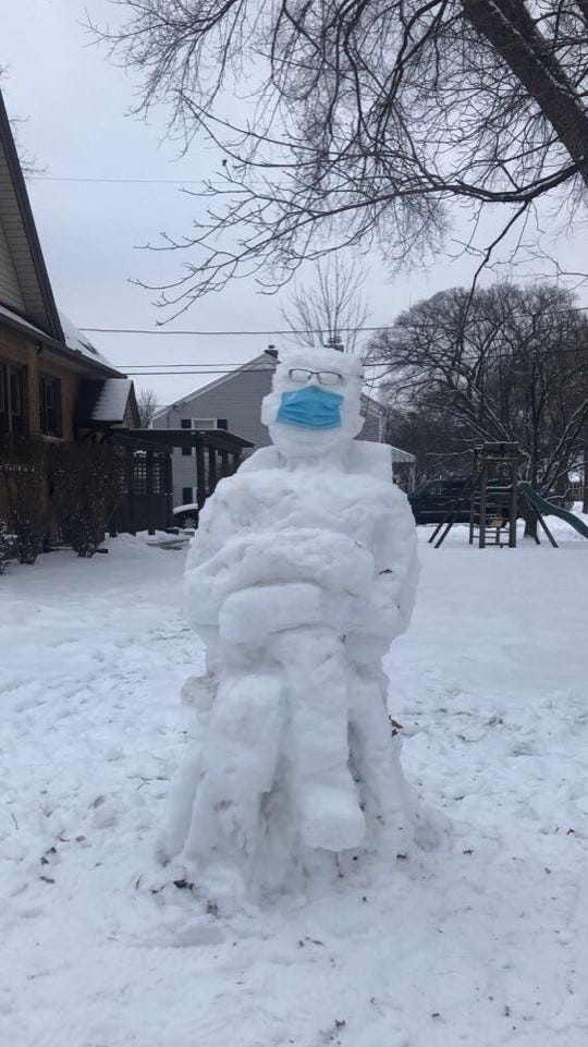 Wauwatosa Teen Makes Bernie Sanders Inauguration Meme Snow Sculpture